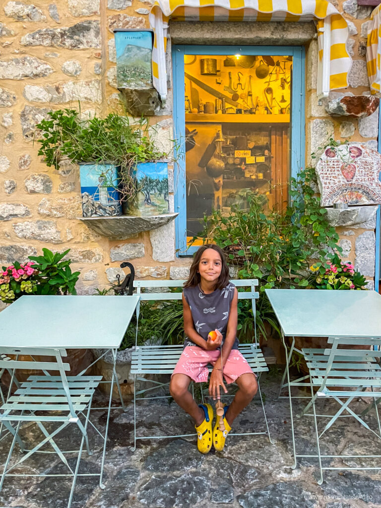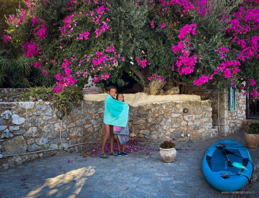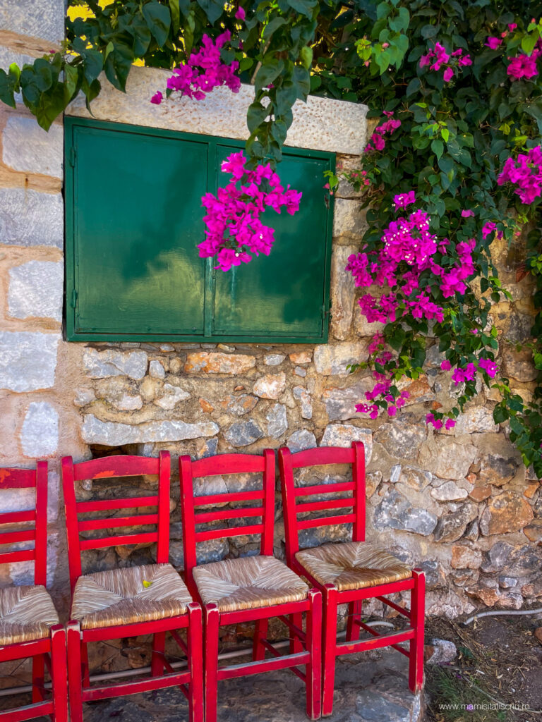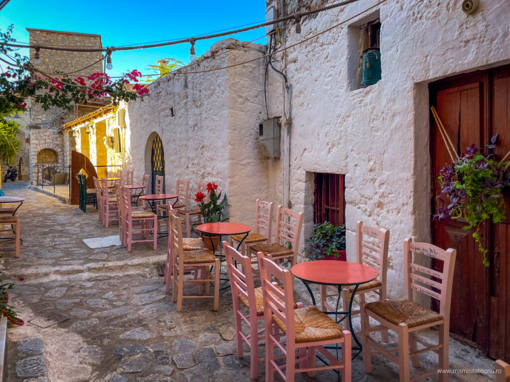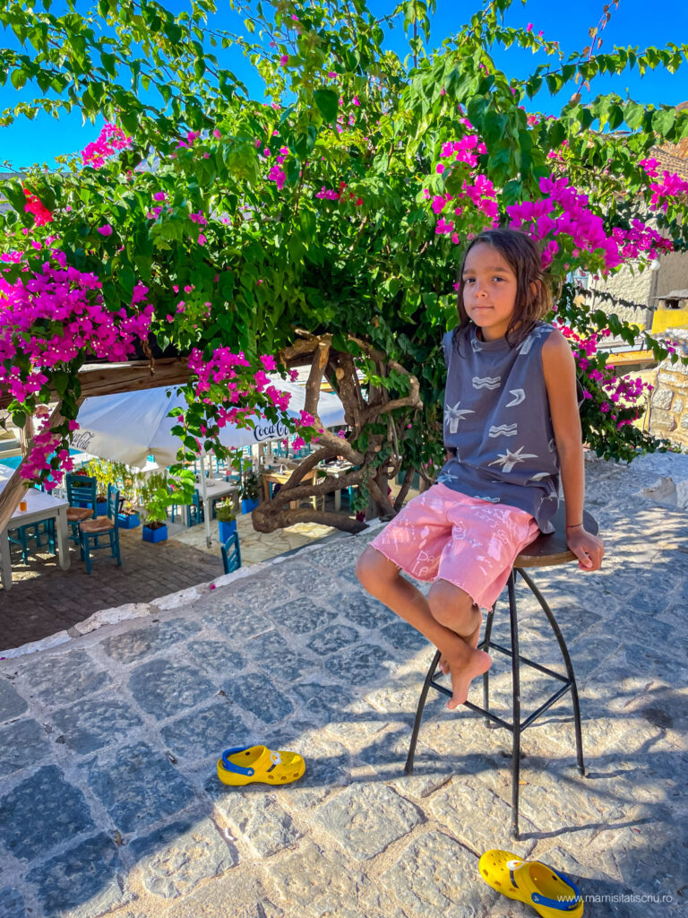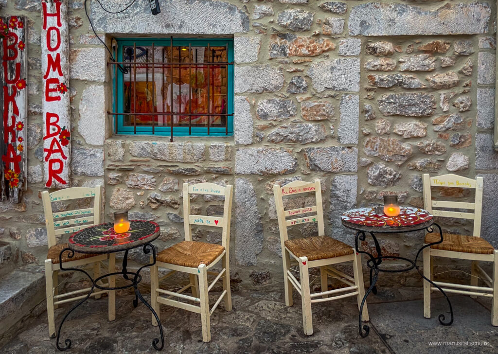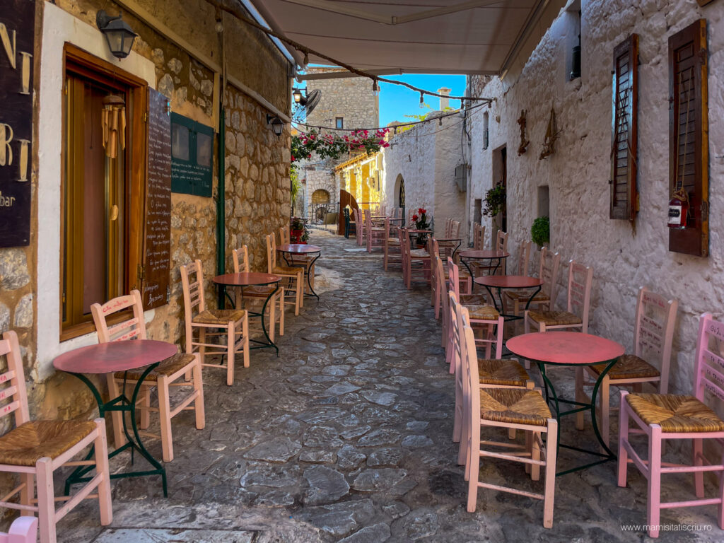 Apoi am strabatut stradute pietruite, am admirat restaurante si taverne extrem de colorate, am intrat in bisericute bizantine, am cunoscut noi prieteni blanosi, am revazut si aici arhitectura caselor din Limeni, am mancat cate un gyros delicios la unul dintre localurile intalnite in cale și despre care am aflat ulterior ca este unul dintre cele mai bine cotate.