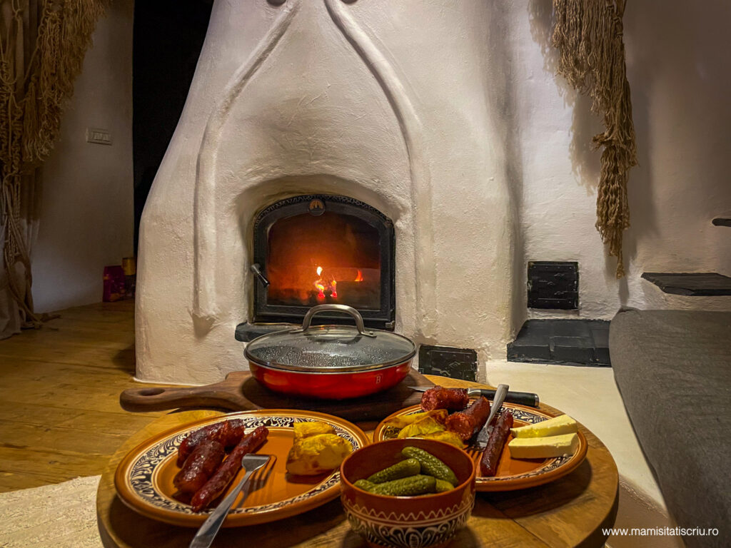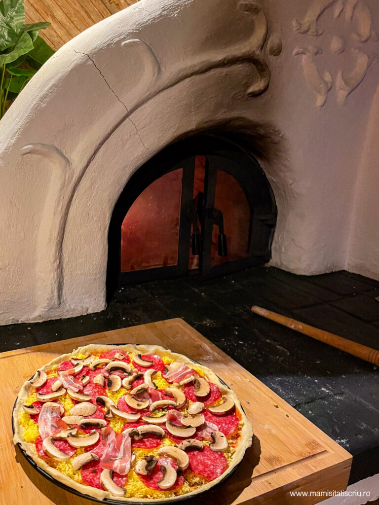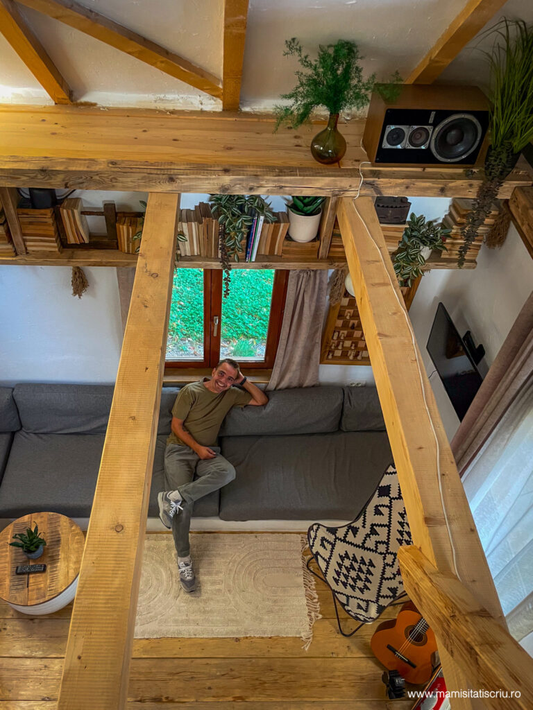 In partea de jos a casei sunt toaleta si dusul, bucataria micuta si cuptorul magic cu lemne unde Alex a facut cea mai speciala pizza.