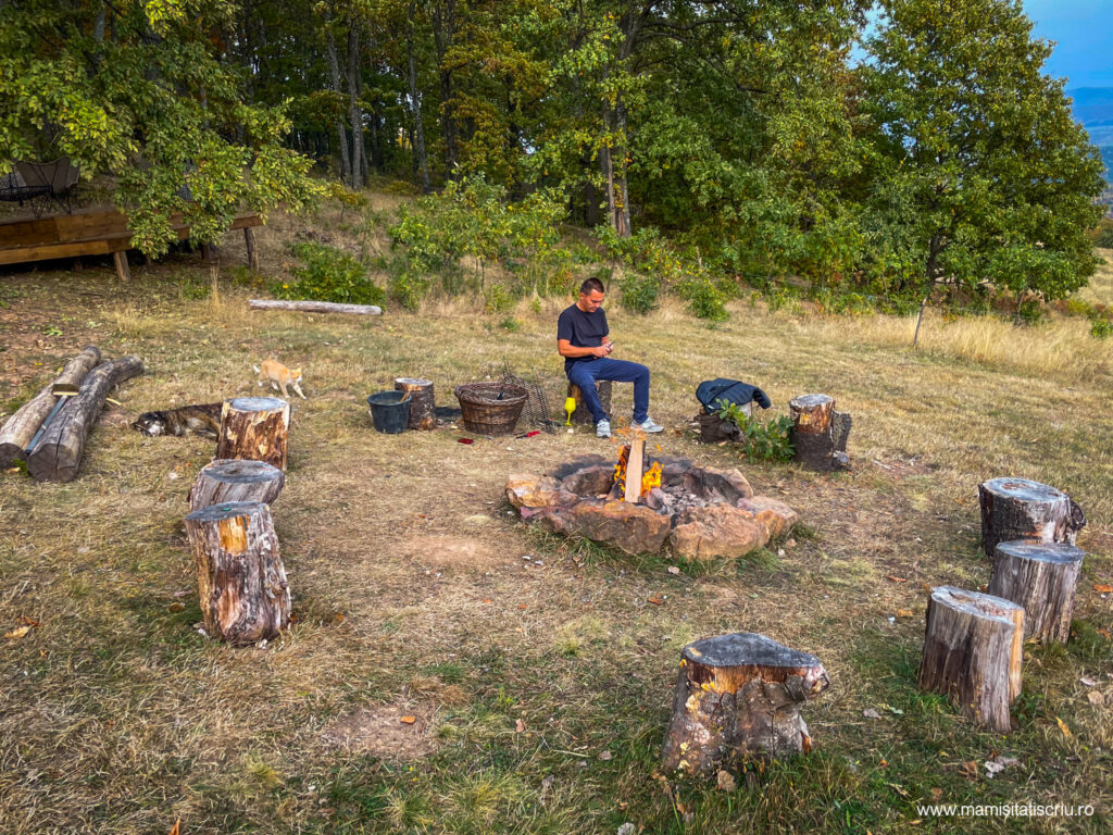 Tot in pustiu exista si o zona de facut gratar in aer liber, marcata de niste busteni micuti.