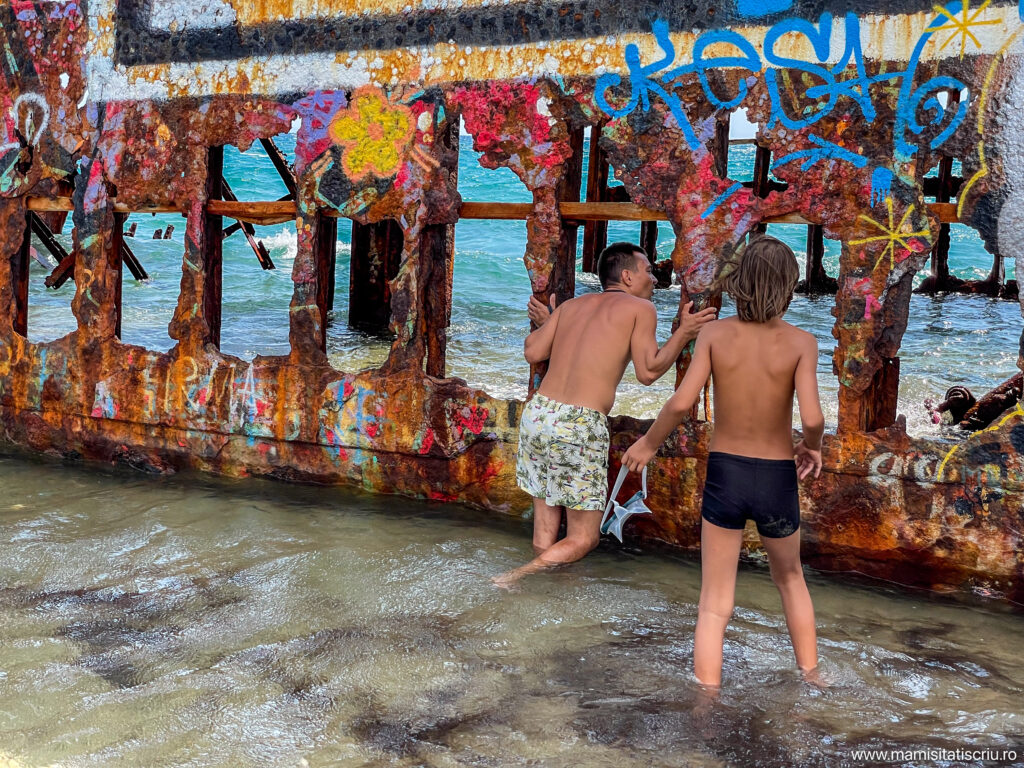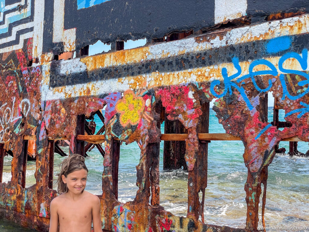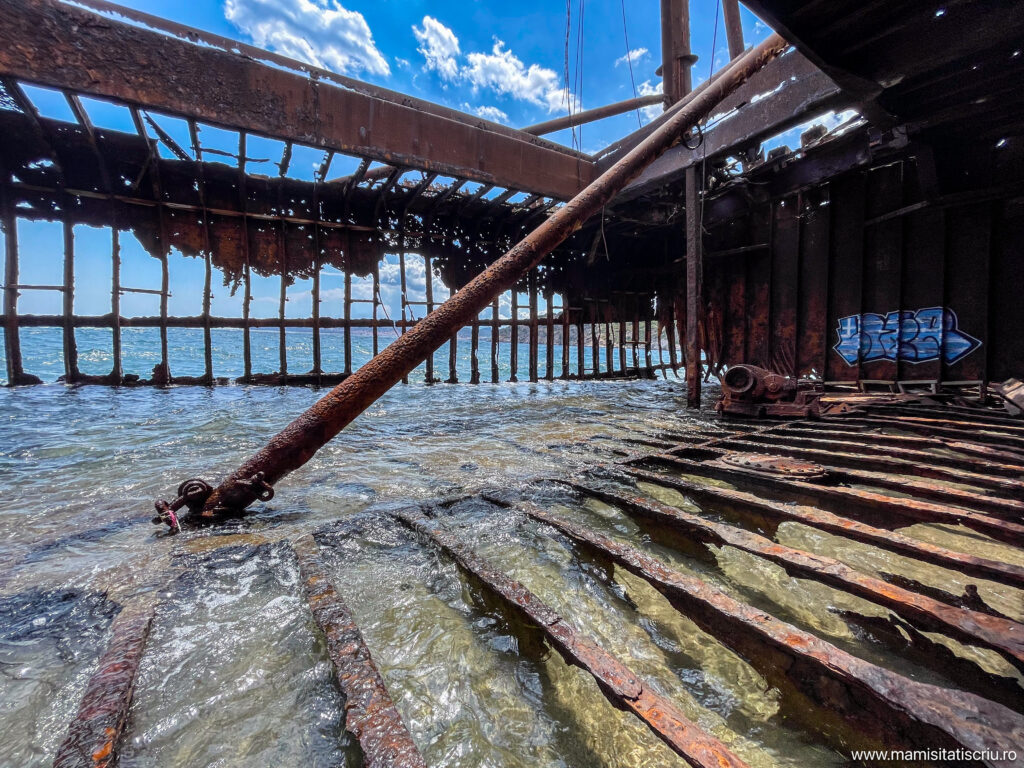 Vaporul esuat era urias, impresionant, ruginit si vesel in acelasi timp datorita desenelor amuzante si colorate de pe el.
