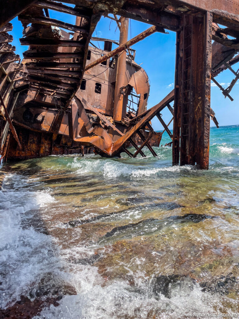 Epava a fost candva o nava cargo care a fost abandonata pe plaja Selinitsa in anul 1981.